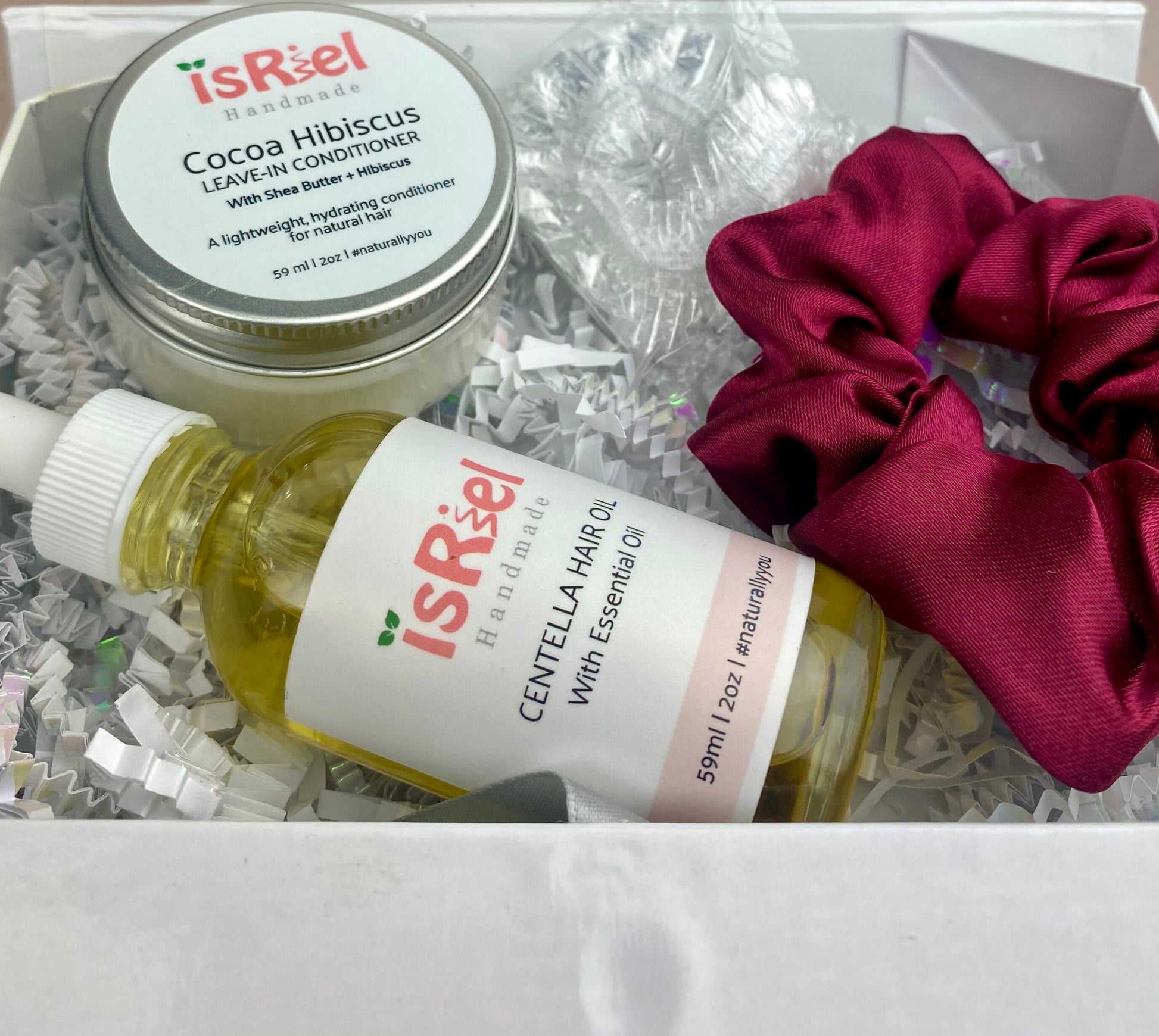 This haircare routine bundle is a curated collection featuring four essential products. This bundle is designed to enhance the health and beauty of your hair, providing you with everything you need for an effective, daily haircare regimen. This listing includes Black Berry Shampoo, Conditioner, Hibiscus Leave-in and the 2 ounce bottle of Centella Hair Oil.